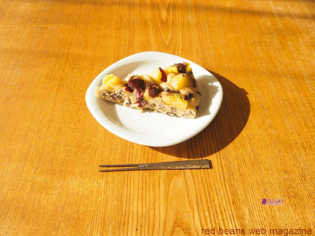⑧ 電子レンジで加熱したさつまいもか、茹でたさつまいもを好みの大きさに切って上に乗せます。